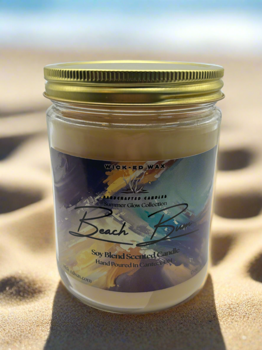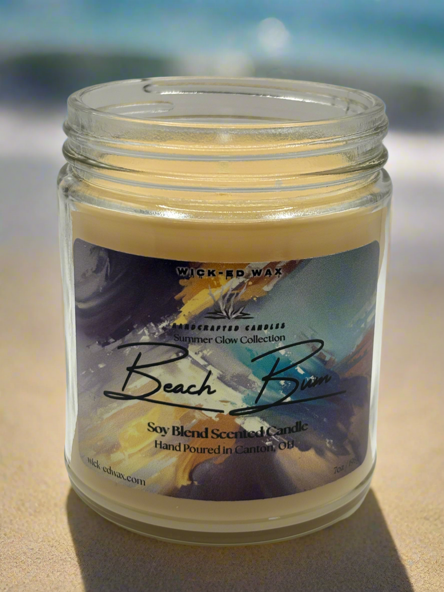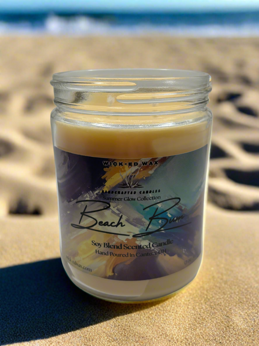 Drift away to the shore with Beach Bum, one of five vibrant scents in our Summer Glow Collection. This hand-poured candle captures the essence of sun-soaked days with notes of warm coconut, crisp sea breeze, and subtle tropical driftwood. Made with premium soy wax and a cotton wick for a clean, even burn, Beach Bum is available in two sizes: a 7oz candle offering up to 40 hours of burn time, and a 13oz candle providing 50-60 hours of coastal bliss. Infuse any space with the laid-back spirit of summer.