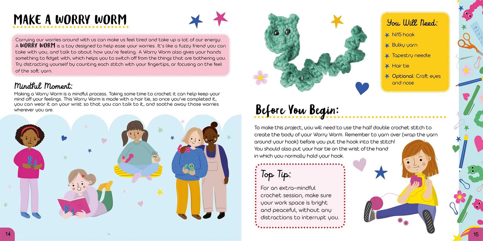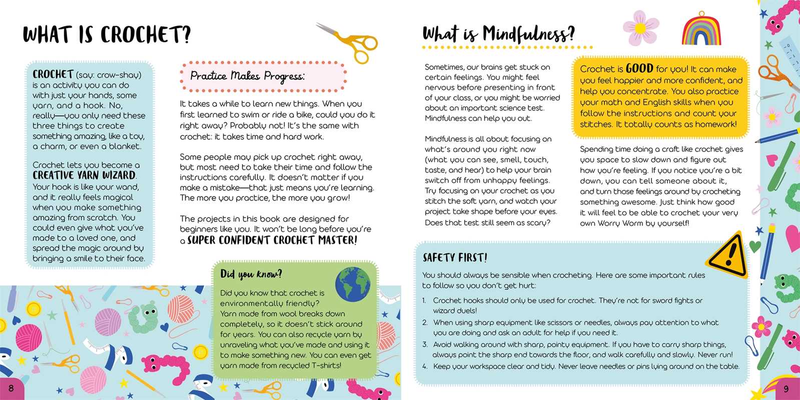Learn to create three cute crochet characters, and discover the mindfulness benefits of crochet, with Calming Crochet: Mindful Projects to Boost Your Well-being. Unleash the power of mindfulness with this fun crochet kit. Use the hook and yarn included to make your very own Worry Worm, and craft your worries away.