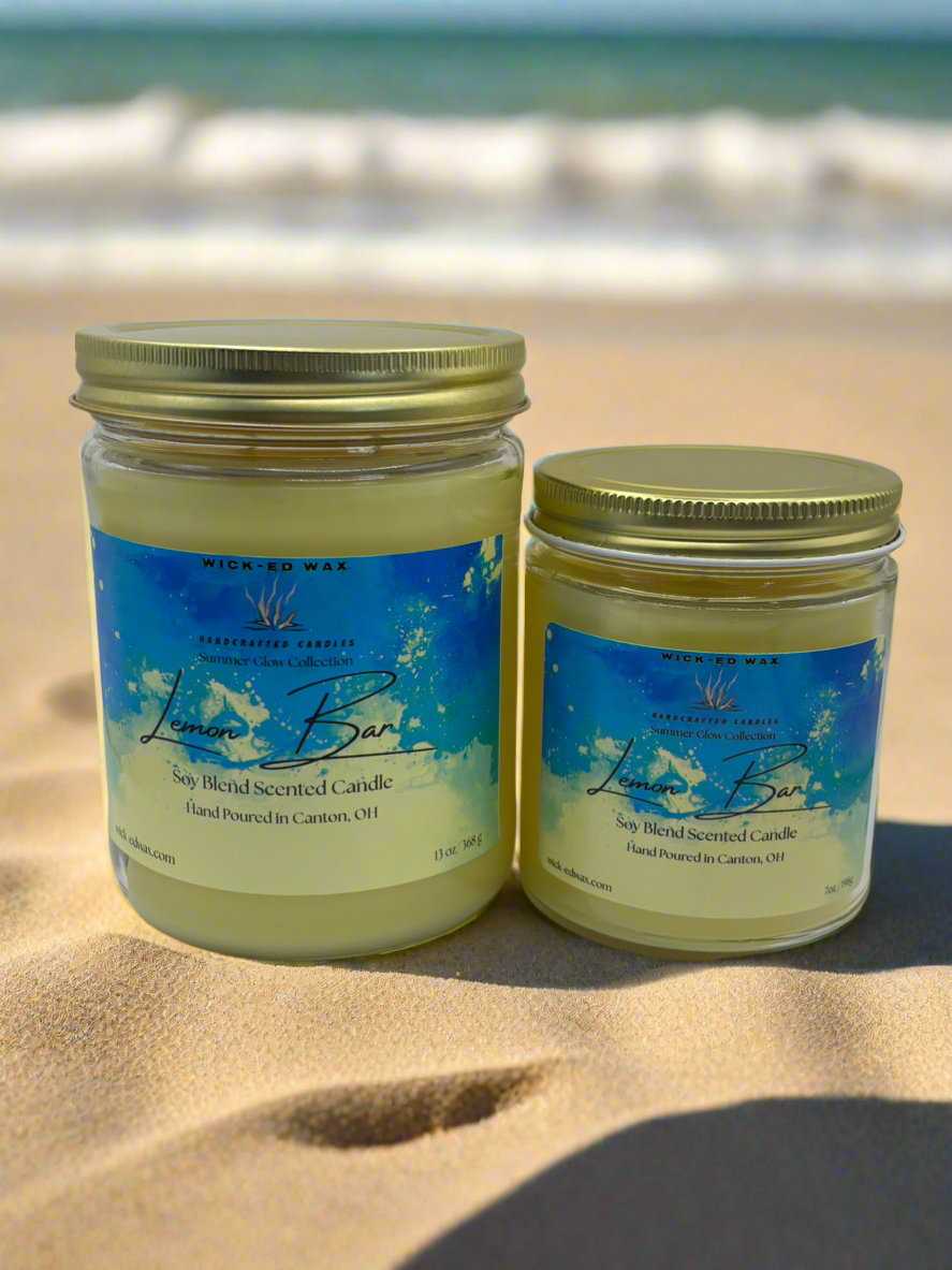 Zesty Limoncello Cream fills our handcrafted Lemon Bar Candle, evoking a freshly baked lemon dessert. Available in 7oz single wick (40hr burn) and 13oz double wick (60hr burn).Poured with eco-friendly soy-blend wax and cotton wicks for a clean, vibrant glow. Perfect for summer vibes or gifting.