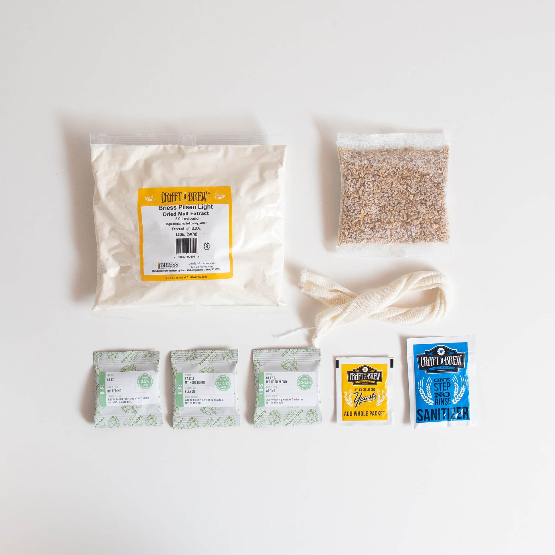 Our Light Craft Lager Beer Recipe Kit includes traditional Saaz hops, used in many refreshing pilsners and lagers, and Mount Hood hops for a touch of floral fragrance.
