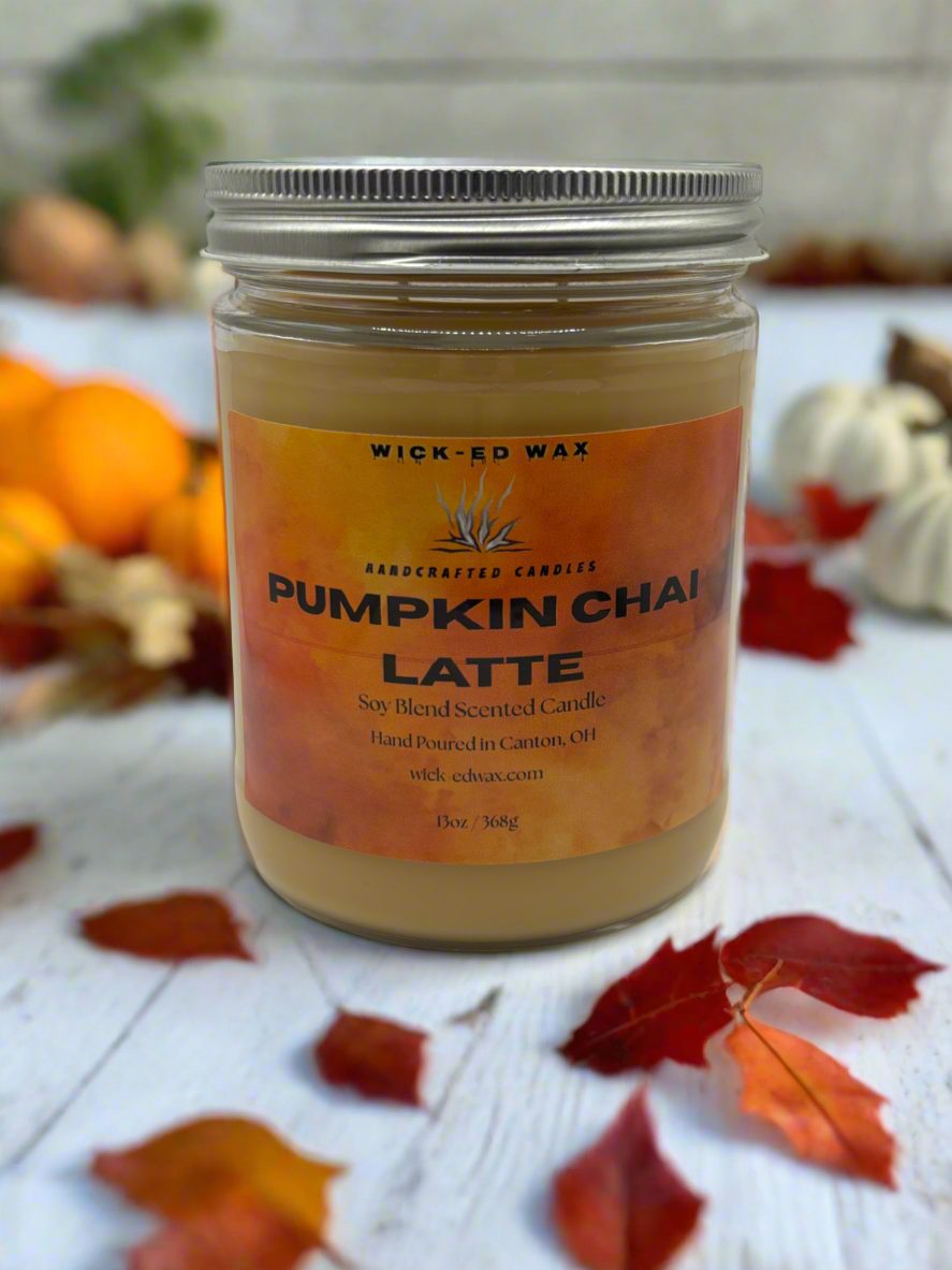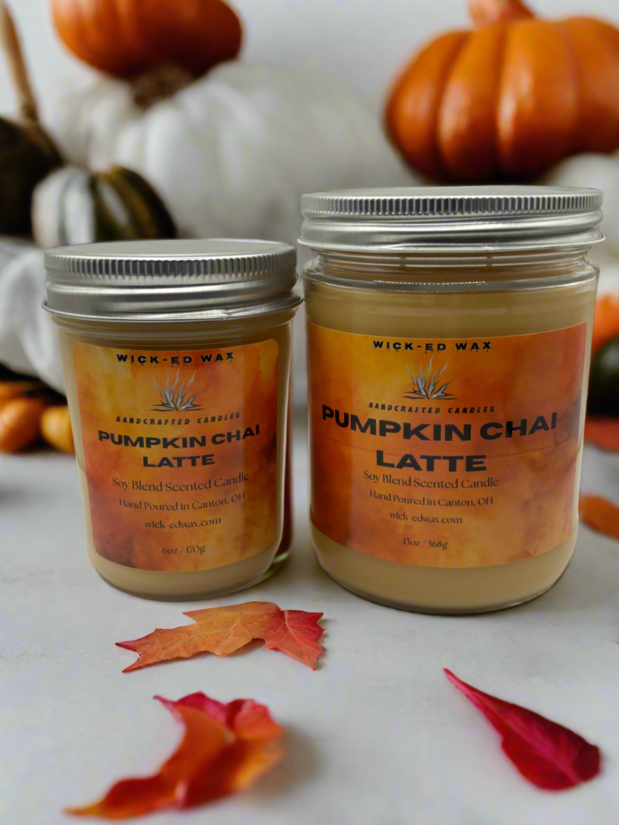 Capture the essence of fall with our Pumpkin Chai Latte Candle, available in 6 oz and 13 oz sizes. Handcrafted with premium soy blend wax, it blends creamy pumpkin, warm cinnamon, smooth vanilla, and a hint of freshly brewed coffee for a cozy, café-inspired glow. Perfect for crisp autumn nights, it fills your home with the inviting warmth of falling leaves and cozy sweaters.