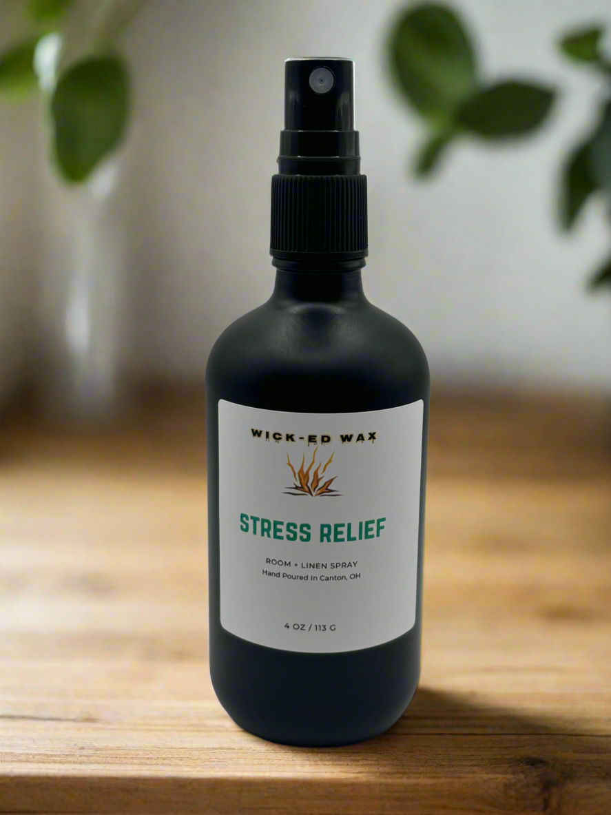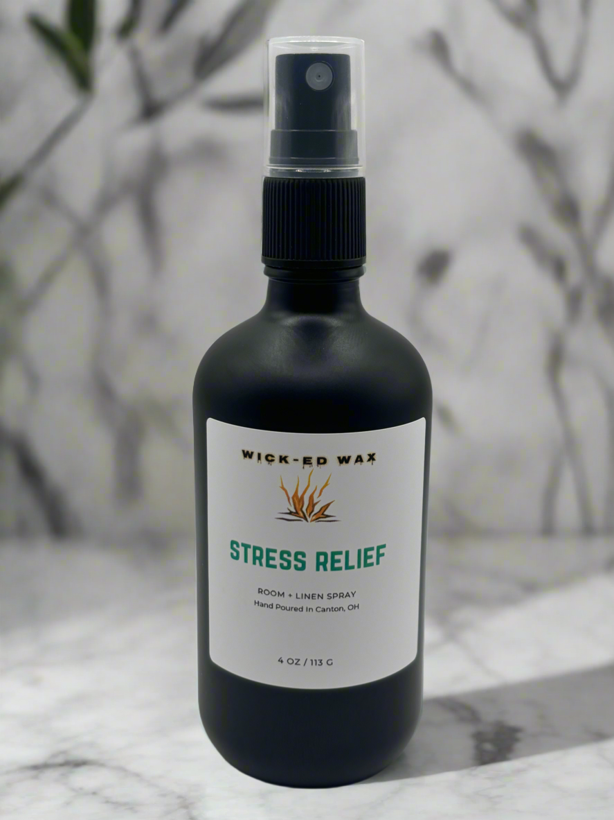 Melt away tension with our Stress Relief Room Spray, a 4 oz mist designed to create a calming oasis. Infused with an exhilarating blend of mint, citrus, and bergamot, this spray unfolds into an herbal heart of spearmint, peppermint, rose, and jasmine. A soothing base of woody notes and tonka, softened by powdery accents, completes this ultimate relaxation fragrance. Perfect for your home, bedroom, or workspace, each spritz delivers a refreshing, long-lasting scent that promotes tranquility and eases stress. Crafted with premium ingredients, this spray transforms any space into a serene retreat.
