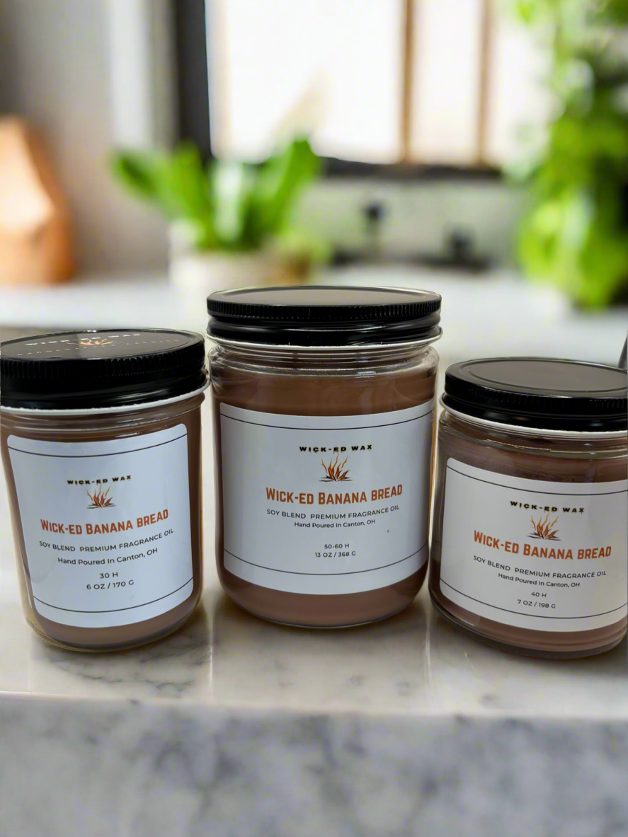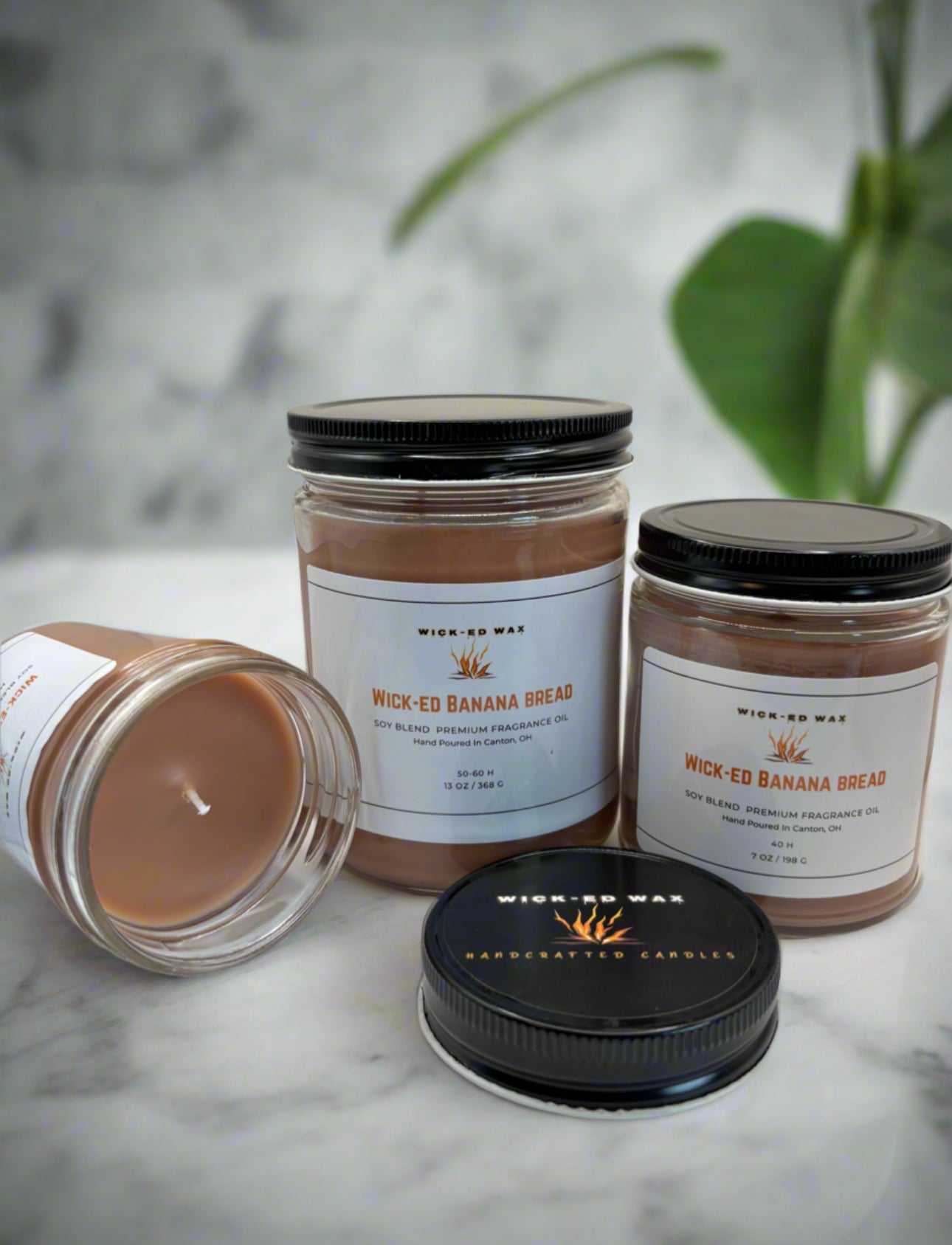 Wick-ed Banana Bread fills your space with the warm, comforting scent of freshly baked banana bread. A delicious blend of ripe bananas, cinnamon, and brown sugar creates a cozy, inviting atmosphere that’s perfect for any time of day.